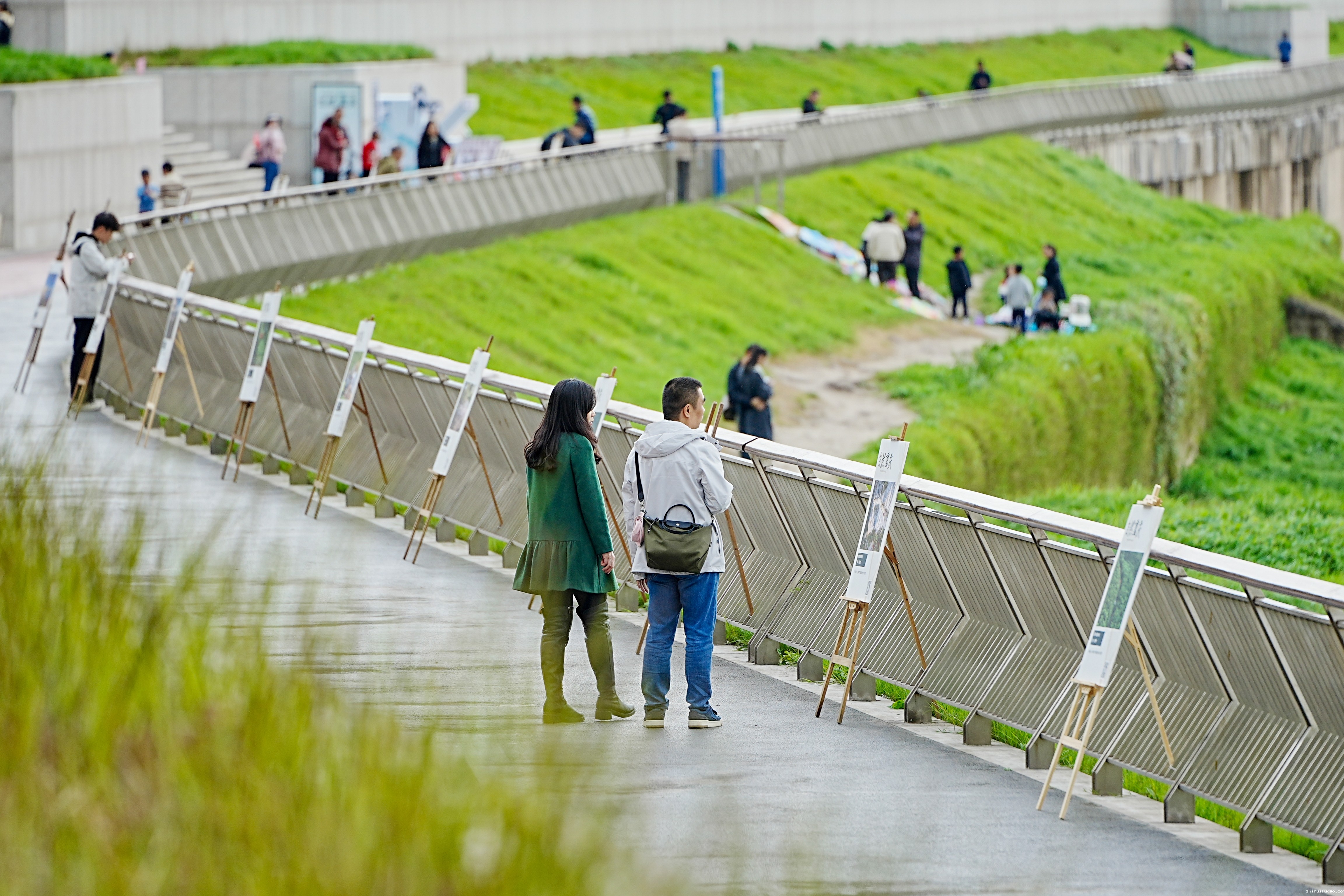 活动首日,现场吸引了众多市民多维体验。其中,自然市集以“公益、自然、零废弃”为理念,超过30 宝藏摊位齐聚,涉及自然教育、自然阅读、生态文创等多个类别,可以通过参与各种趣味互动、体验创意十足的小实验,深入探索自然奥秘。“自然影展”内容为“两岸青山·千里林带”专题影像大赛获奖作品。“1小时自然时光”鼓励市民打开五感,在500米的滨江自然步道沉浸式感受自然。自然艺术手工坊的艺术家们将引导公众发挥创意,用石头、树枝、落叶、羽毛以及自然废弃物等制作成好看又实用的艺术品。