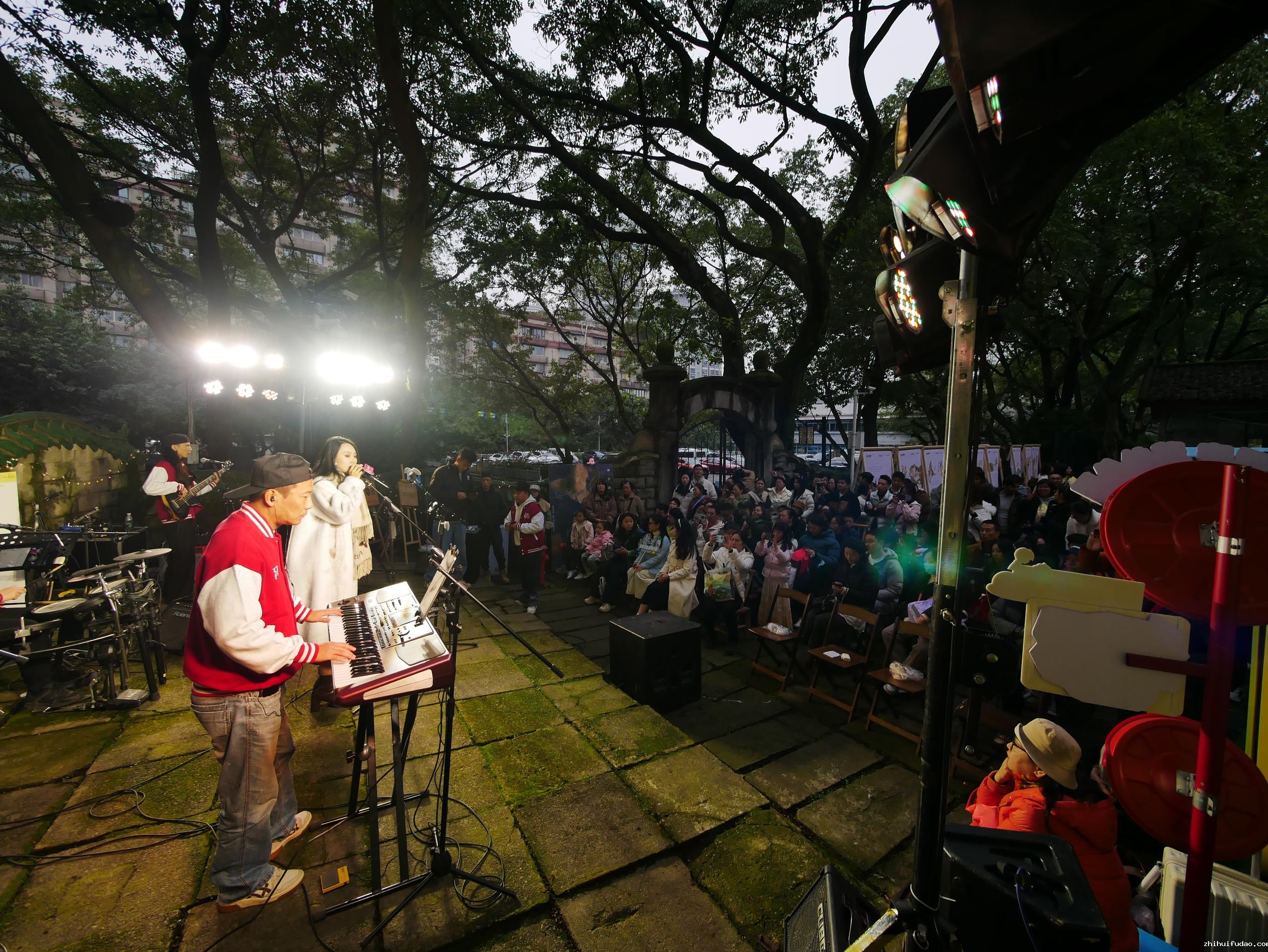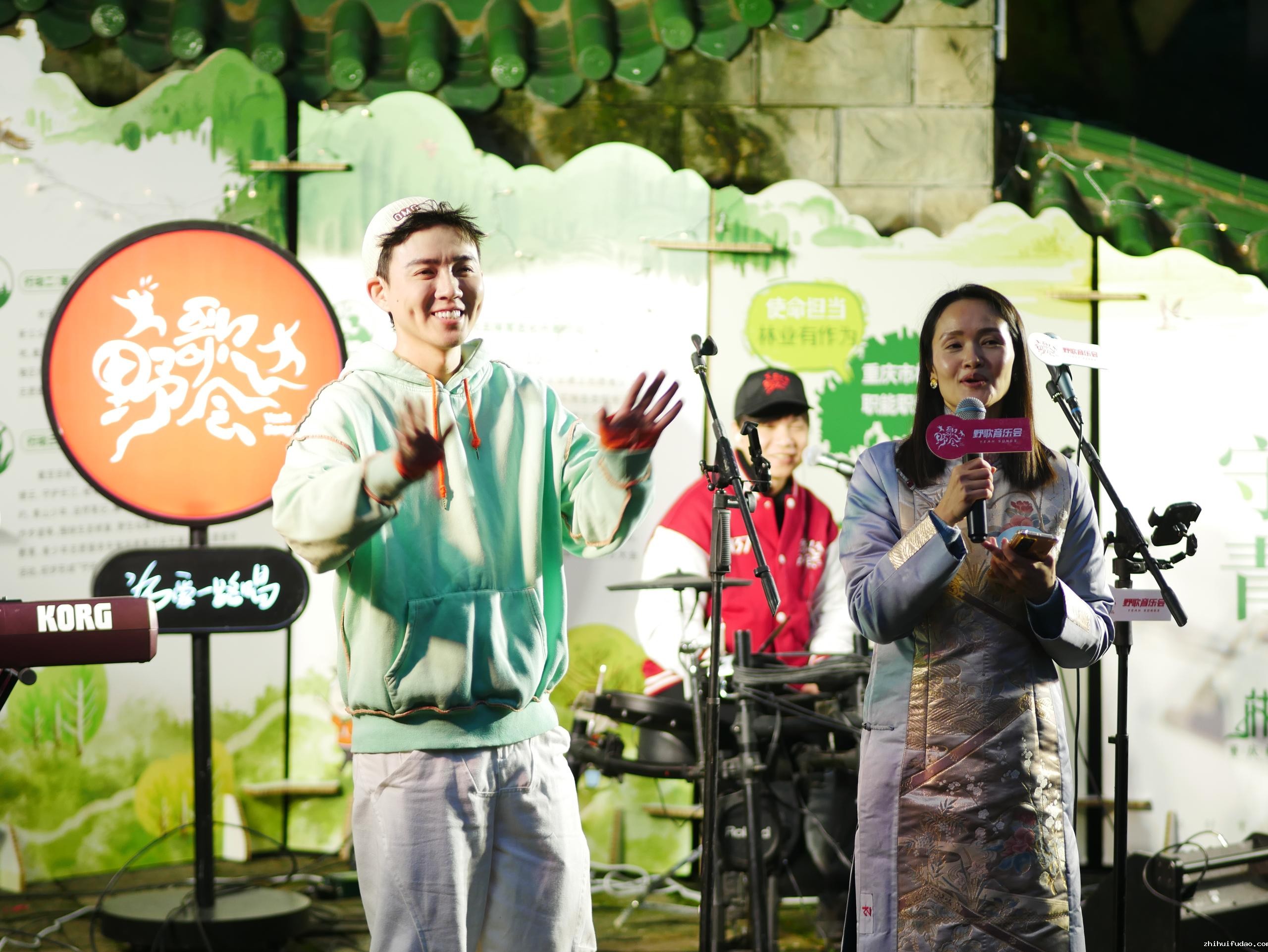 在“漫步缙云·青山驿站”舞台前挥舞手臂